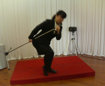 楽譜の中の歌詞だけ見て、聴いてみたいなあ~と思って選んでおいた曲を最後に弾いてもらい、後片付けをしていると、この日ずっとお寺に行かされていたさいとーのワンマンショーが始まった。