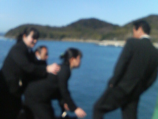 2人共当家の住所や名前は聞かされておらず、開式時間も迫っていたので再び本社に問い合わせると 「ええー?? 誰も迎えに行ってませんか?」 って、いねーよ! 早速現場社員に連絡を入れてもらい、さいとーが軽バンでお迎えに来てくれた。 当然後部座席なんてものはなく、当たり前のように司会は助手席。 わさびは・・ 荷台です。 うんこ座りの護送車か!! 開式約1時間前・・ 司会さんは打ち合わせやら何やらで大忙し。 わさびは、すでに全部準備できていたのですることもなくウロウロと。。 島には島のやり方があり、通夜とか式の決められた時間とは関係なく弔問客がぽろりぽろりと訪れ、玄関口に設けられた受付を済ませ、拝礼だけをして帰られる。 なんとなく、島らしいのんびりした時間が流れていった。 式の途中、いつもの料理屋さんが船でやってきて、こっそり玄関から家の中へと料理を運び入れることになっていた。 音を立てないように、そ~っとそ~っとみんなで料理を運んでいると、最初は渋かったけど最近壊れちゃった新人社員のマスタ。 料理を抱えていた肘が偶然にも玄関のチャイムをポチッと押して ピンポ~ン♪ ( ̄ー ̄; ヒヤリ マネキン。 式が終わると司会の仕事は終わり。 料理屋のおっちゃんの好意でフェリー乗り場まで連れて帰ってくれる事になった。 当然撤収要員のわさびはここからが大忙し。 ばたばたと片付け、元の家に戻して出航時刻を確認すると、次の船まで約1時間半。 社長が料理屋さんに社員と派遣の弁当も頼んでいてくれたらしく、フェリー乗り場で食べるというので 「えええーー!! 砂浜に行こうよ~ せっかくの島なんだし~ 」 わさびとさいとーとれこちゃんで爺に泣きつき、 「あほか!行かんわ!」と言いながらも、ほんとは優しい爺が連れて行ってくれた場所。 姉さん・・ ここらしいっすよ。 砂浜は、遠いっすね。。 見ながら食え・・ ってことか。 爺め! 文句あるんかあ?